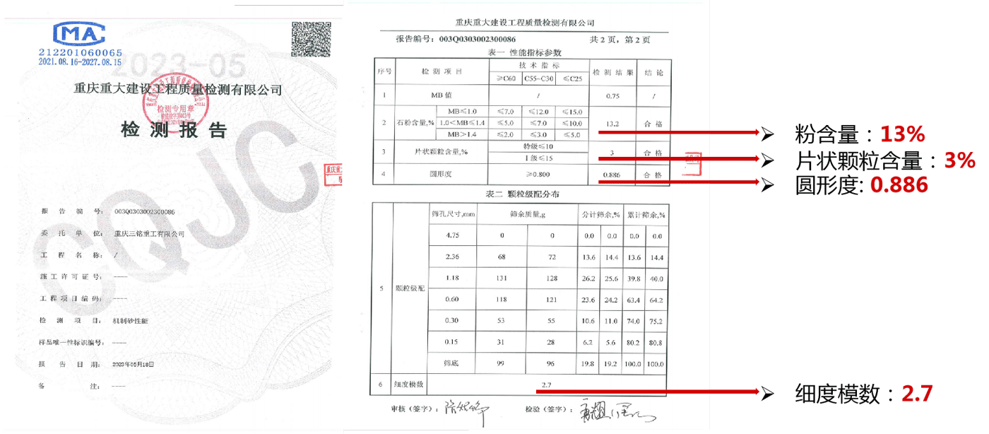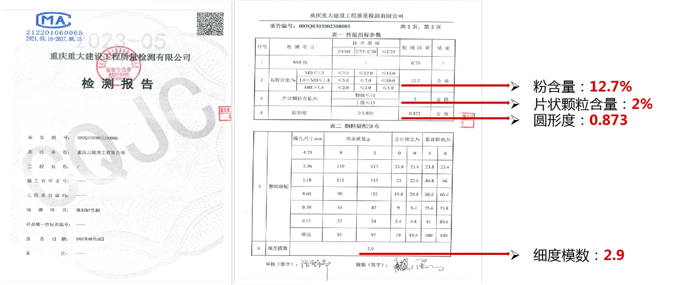 三方機構(gòu)檢測報告2:符合國標(biāo)《GB-T14684-2022 建設(shè)用砂》中砂Ⅱ區(qū)標(biāo)準